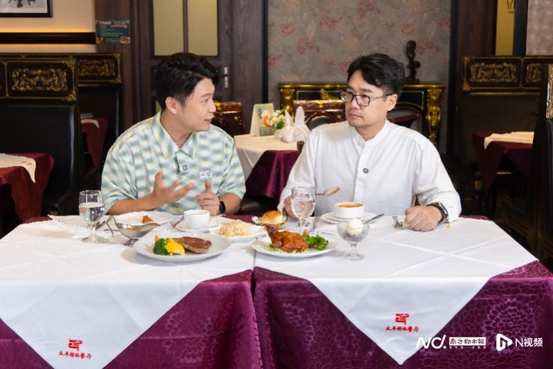红线女之孙马俊(右)介绍,红线女生前很喜欢去太平馆西餐厅吃饭,每餐必点那里的乳鸽。
