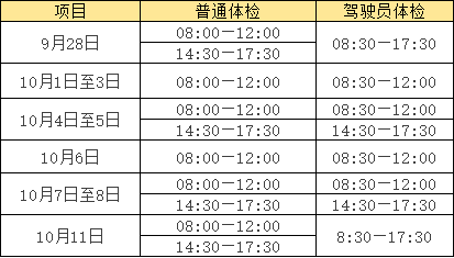 10月1日、10月7日、10月8日开诊,10月2日-10月6日停诊。