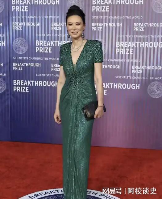 57岁的邓文迪以一袭绣花薄纱裙优雅现身。