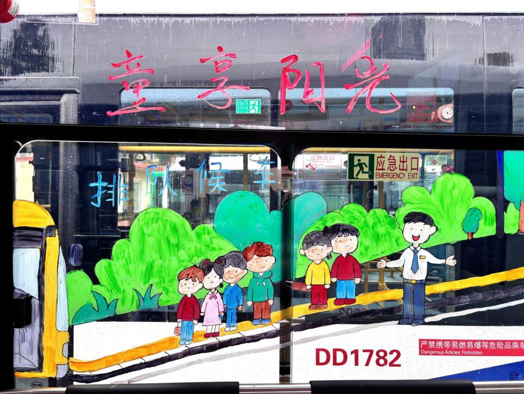 记者从城运控股公交集团了解到,这场覆盖青岛多区域公交线路的手绘行动汇聚了多方力量,从公交驾驶员到幼儿园孩童、从书画工作室师生到孤独症儿童、从乘客代表到公交爱好者,不同群体带着相同的热情参与创作。他们以车窗为“画纸”倾情创作,每一笔都蕴含着深情与创意,让原本功能化的车厢升级为传递理念、承载情感的“流动载体”。