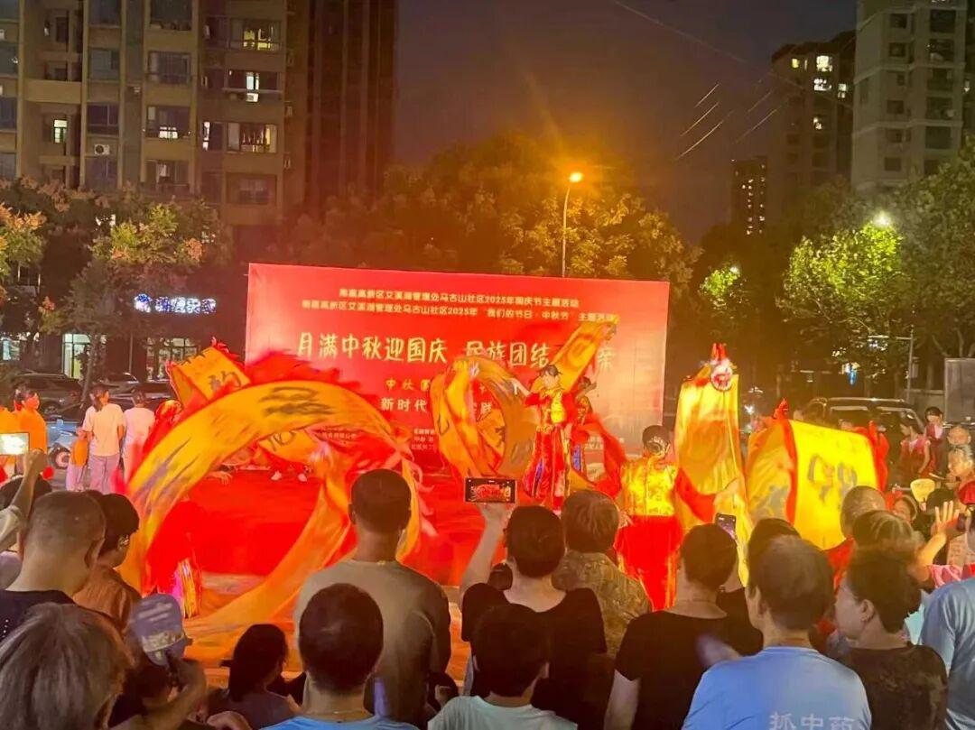 马古山社区的晚会以龙舞《欢聚一堂》的激昂旋律开场,彩龙翻腾、鼓点铿锵,瞬间点燃现场气氛。随后民族舞的灵动曼妙、广场舞的活力昂扬、萨克斯独奏的悠扬婉转,居民们用多元艺术传递着爱国情怀。最后,舞蹈《中国大舞台》的优美舞姿为晚会画上圆满句号,演员与观众共同定格欢乐瞬间,让这个国庆之夜成为永恒的记忆。