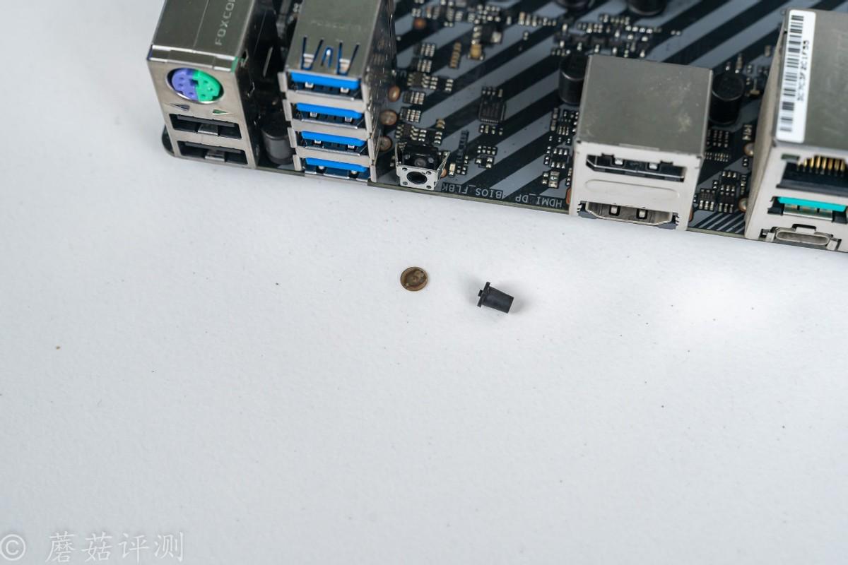 ▼朋友的这块主板已经过保1年多了,他也比较着急用电脑,蘑菇就想着直接把这个按钮破坏掉,反正也不会影响功能。后面如果真有需求,可以再买一个按钮,再给他用老铁焊上。这里先直接使用螺丝刀把按钮塑料件两边的金属件撬开,很轻松。