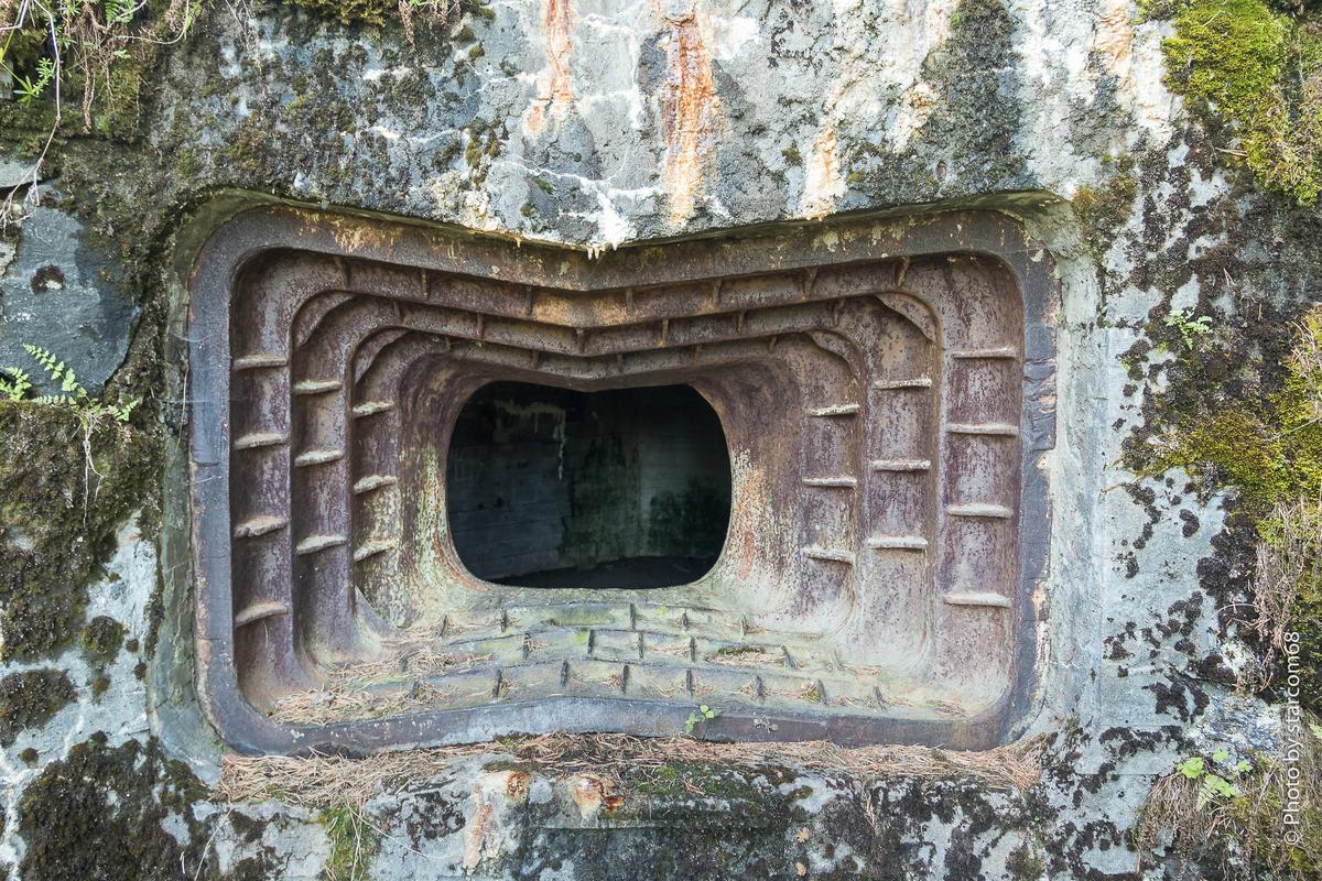 火力点内部视角,可以看到盖子的边缘和绞盘。看起来里面还有一个小小的混凝土凸台,以便机枪手操作更为方便。