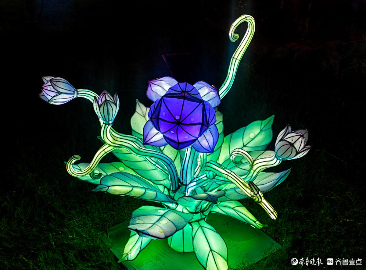 十月一日国庆佳节的夜晚,临沂沂河新区的皇山东夷文化园内,五彩斑斓的灯光将节日氛围装点得分外喜庆。放眼望去,园区内迷雾蒸汽缭绕,五彩灯光交相辉映,动物造型优美灵动,植物绽放着迷人光彩,处处充满奇幻色彩。 高军 摄