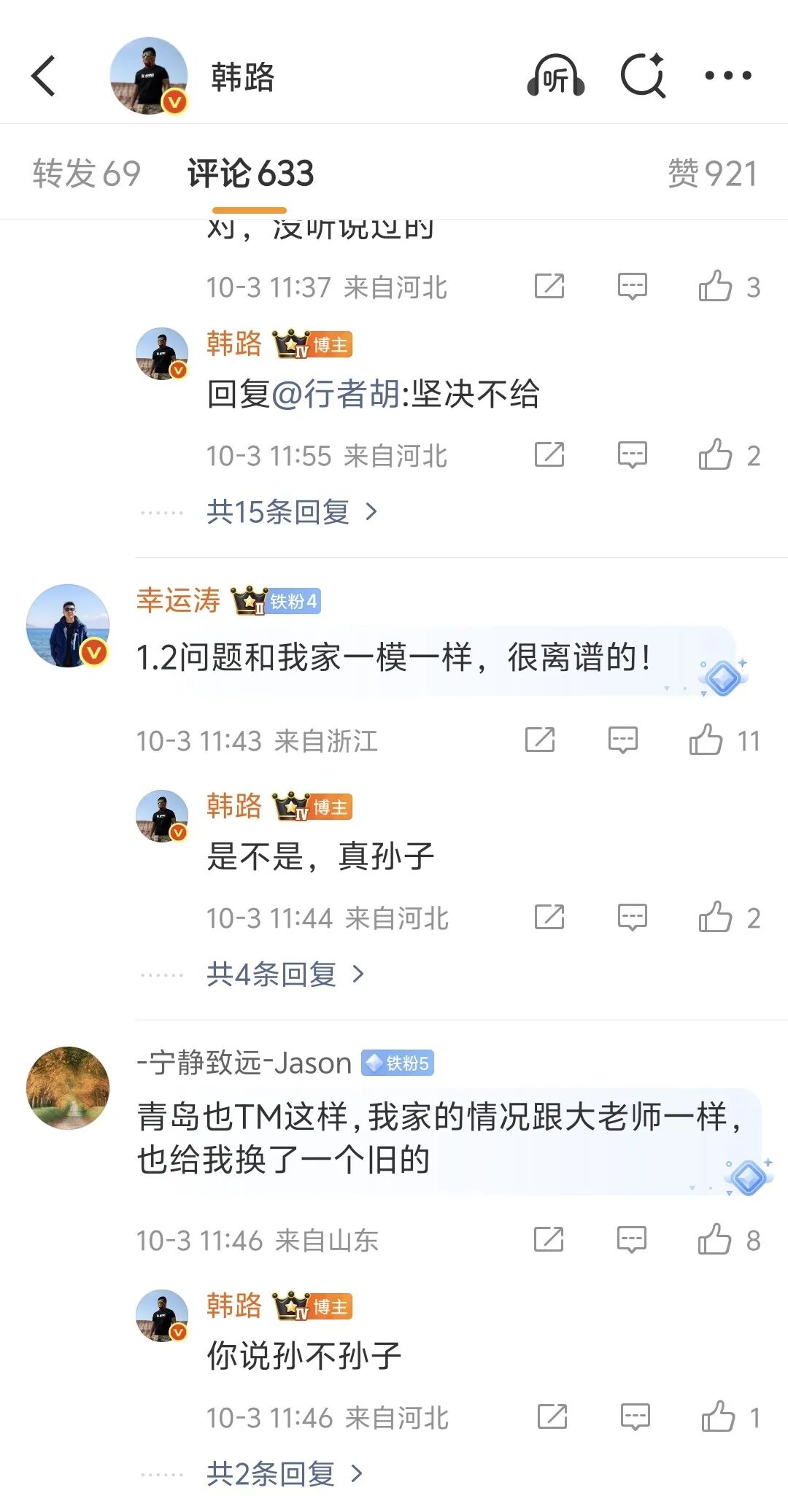 这是车圈著名大V韩路对移动宽带的吐槽!网络质量有待提升,如果真是光猫有问题,为何就不能给客户换一个,解决问题才是最重要的: