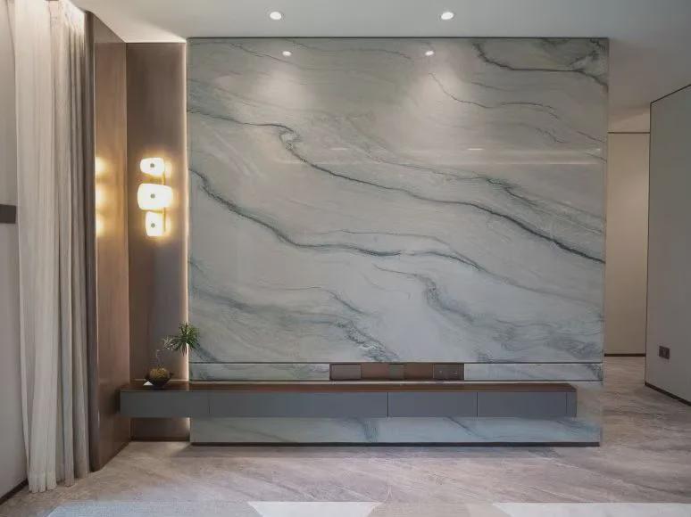 电视背景墙选用带有东方意蕴的万里河山石材,颜值超高!