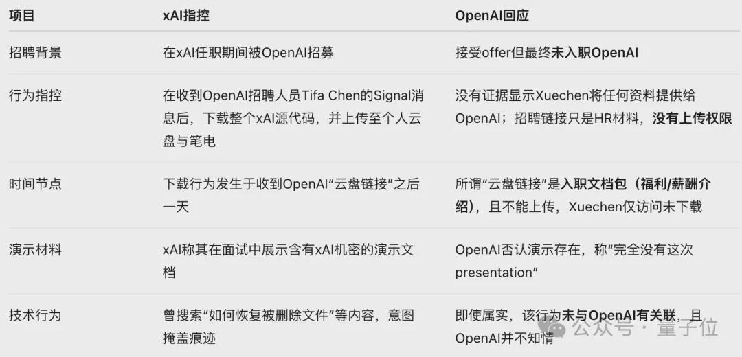 xAI认为其行为与OpenAI招聘密切相关,且其受雇岗位即与原xAI职责重合,而OpenAI这边和他联系的招聘官也是Tifa Chen。