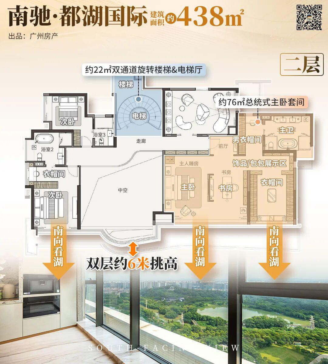 当中,主卧套房达到约76㎡,相当于市面一套刚需小户。