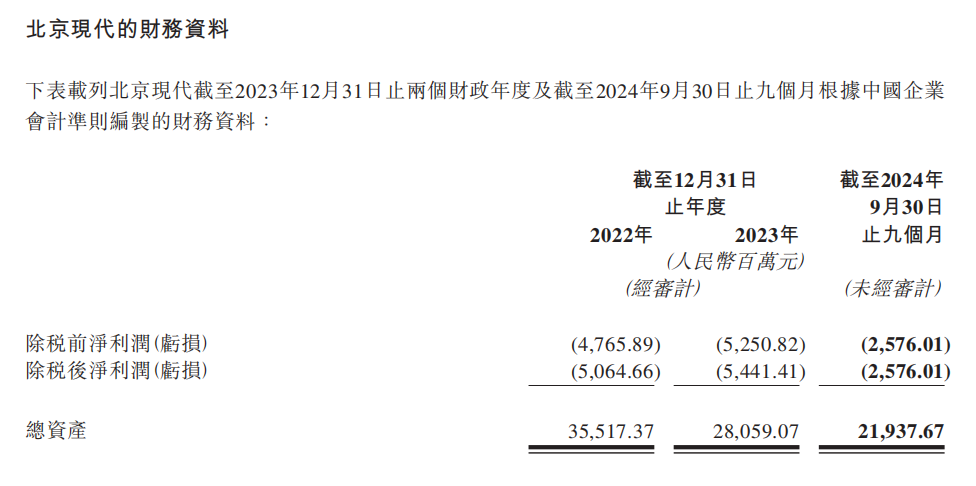 这一举措,在为北京现代在中国市场谋求全方发展提供更为充足“弹药”的同时,也与北京现代于2022年至2024年前三季度的亏损状态不无关系。