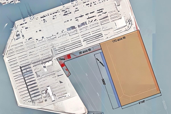 具体而言, 拟建的500号码头位于400号码头以南,占地200英亩,包括两个新泊位和约3000英尺长岸线。该项目位于港口南端的天然深水区,能够挂靠新一代大型集装箱船,将大大提高港口货物效率。