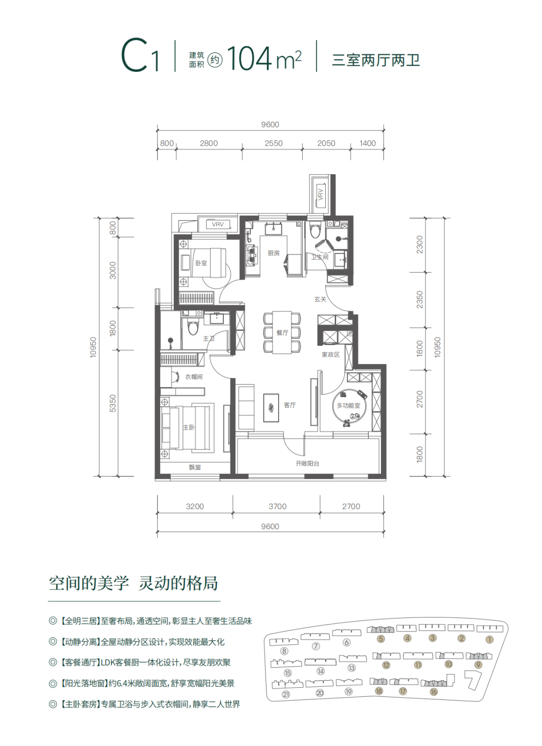 强调空间格局“南向面宽突破设计”,国誉燕园丨朗润整体南北通透LDKB一体化,如建面约88㎡户型南向面宽可达7米,104㎡三面宽约9.6米,127㎡四居达到10.4米,使更多阳光与自然风进入室内,不辜负西山与园林美景。