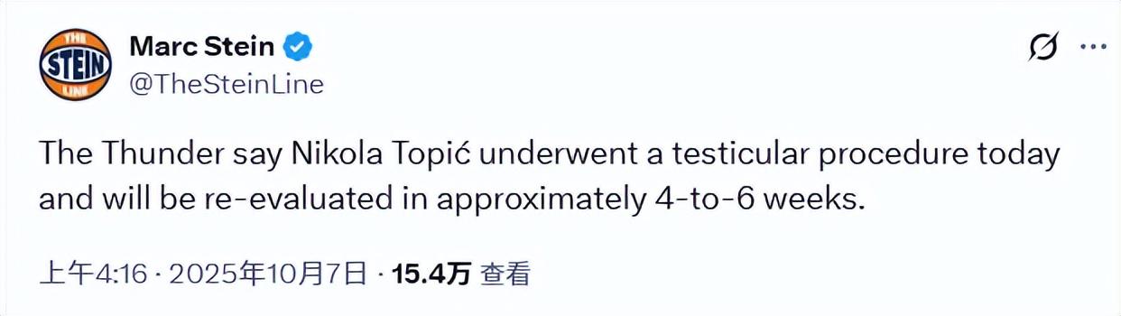 雷霆队的后场深度十分充足,主帅戴格诺特麾下拥有亚历山大、卡鲁索、卡森-华莱士、以赛亚-乔、阿隆-威金斯和阿贾伊0米切尔等后卫球员。因此,托皮奇的伤缺预计不会对球队新赛季初的轮换阵容产生重大影响。