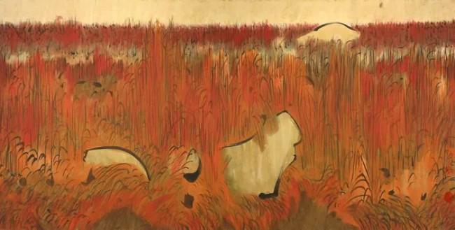 刘巨德《红草地》水墨纸本设色 69cm×137cm 2012年
