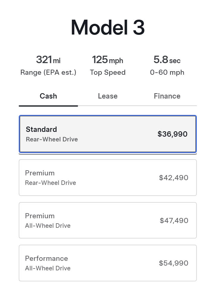 至于最核心的价格,两款全新的 Standard 车型,均比此前的门槛再下探超过 10%: