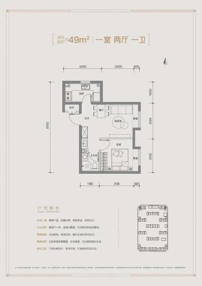 - 北京城建·国誉朝华 平层户型·建面/49㎡