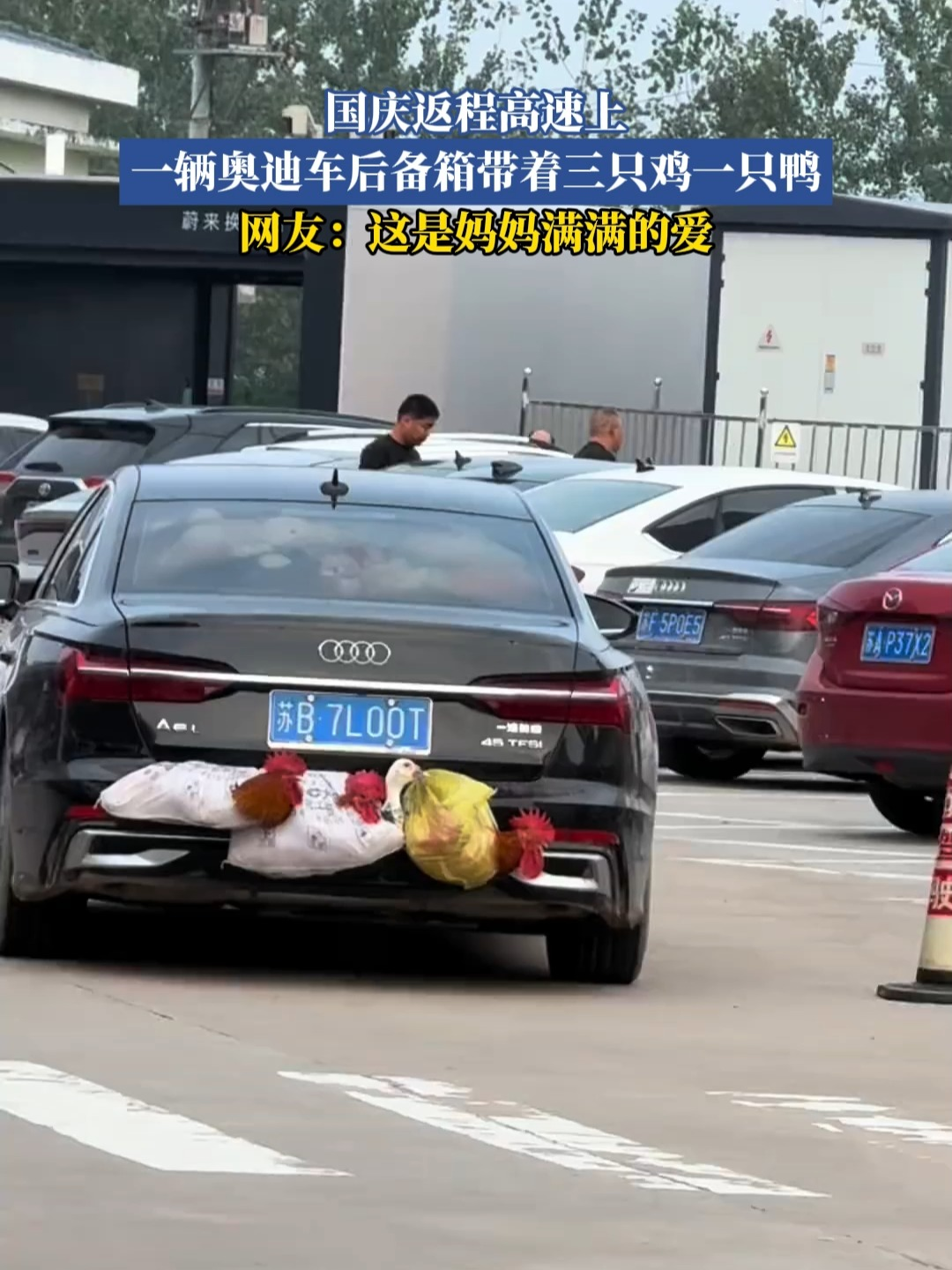 国庆返程高速:车尾 “鸡鸭阵” 与后备箱里的 “亲情超载”f