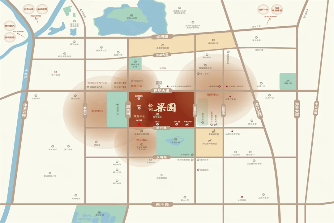 地理位置:位于天津市滨海新区大港迎宾街与世纪大道交口,处于大港老城核心区,是滨城首批落位的城市更新项目之一,周边政务、金融、商业、文化、教育等资源汇集。