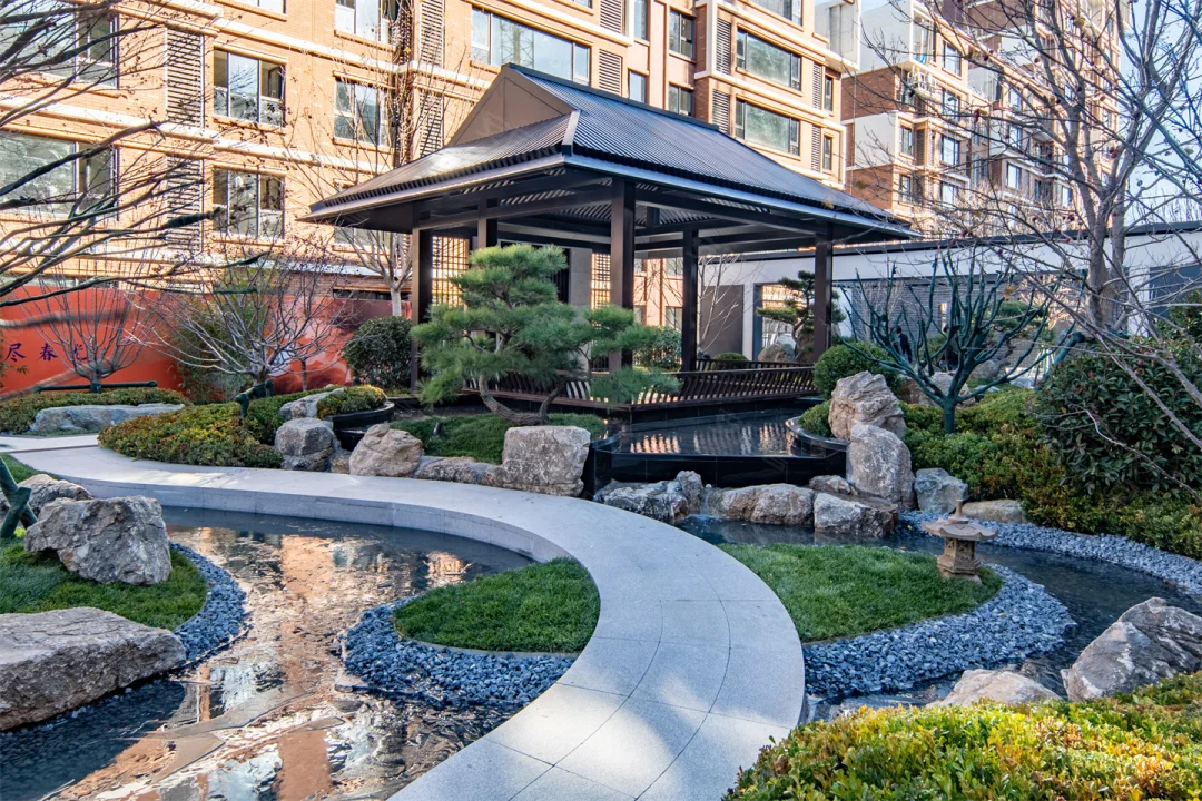 园林景观:打造了“一堂、四园、五苑、六庭”的景观架构,拥有约1.5万平方米的16重园林秘境,如涵秀园、澜溪园等,营造出“不出城郭而获山水之怡”的独特体验,还与项目南侧近1万平方米的隐秀花园以及约7.7万平方米的大港公园形成三重景观叠加,景观体量达10万平方米。