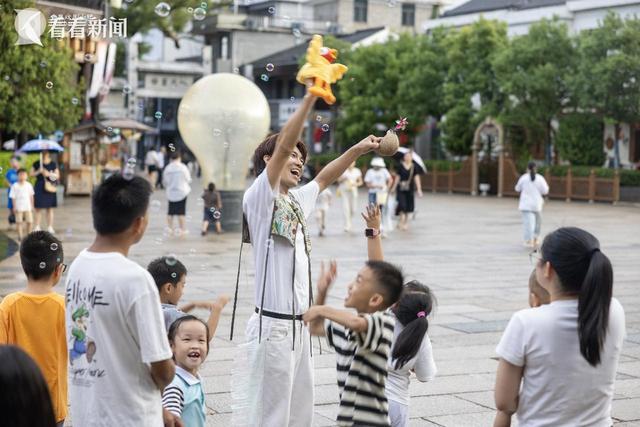 除了每天的环游演出,德法剧团还带来了高空秋千工作坊和奇幻泡泡工作坊,中外文化的交流此刻具象化了,会昌戏剧小镇已经成为一扇窗,让这里的孩子从小就可以接触到世界上不同的文化艺术,也让国外艺术家们可以感受到中国观众的热情好客!