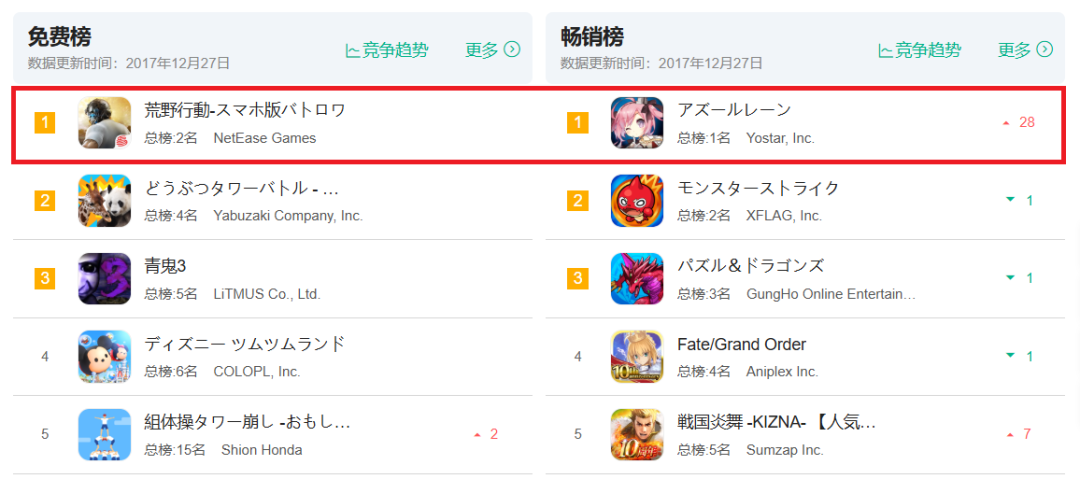面对内部环境的恶性循环(IP依赖、广告成本),确实有越来越多的游戏公司开始向高品质游戏转型,同时海外高品质游戏对日本市场的冲击,也加速了日本厂商的转型速度。