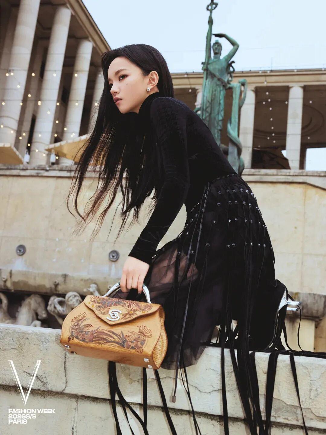 痞幼身着SHIATZY CHEN2025秋冬系列旗袍亮相。旗袍领与精致刺绣暗藏古典雅致,廓形设计迸发出现代张力,搭配黑色长靴,在巴黎的浪漫氛围中,碰撞出独属于她的飒爽风格。粉棕挑染的发型更是点睛之笔,传统与前卫的融合,就像一场跨越时空的时尚对话。