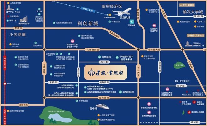 伴随太原、榆次城市发展进入崭新阶段,太榆黄金中轴科技创新城,正以“山西硅谷”的蓬勃姿态,展现出强劲的发展动能。重大基础设施加速推进:武宿机场三期扩建工程预计将于今年年底完成,大幅提升区域交通枢纽能级;化章街东延工程通车在即,区域立体交通网络日益完善。怀柔实验室山西研究院、国网山西省电力公司电力科学研究院晋中试验基地、华能中海油等一批重要科研机构及科创企业纷纷落户于此,板块创新活力与价值潜力日益凸显。作为深耕三晋大地的本土国企,山西建投对家乡热土怀有深厚情感。凭借对城市发展脉络的深刻洞察与前瞻视野,精准落子科技创新城这一价值高地,匠心打造城市院墅标杆——建投·雲熙府。