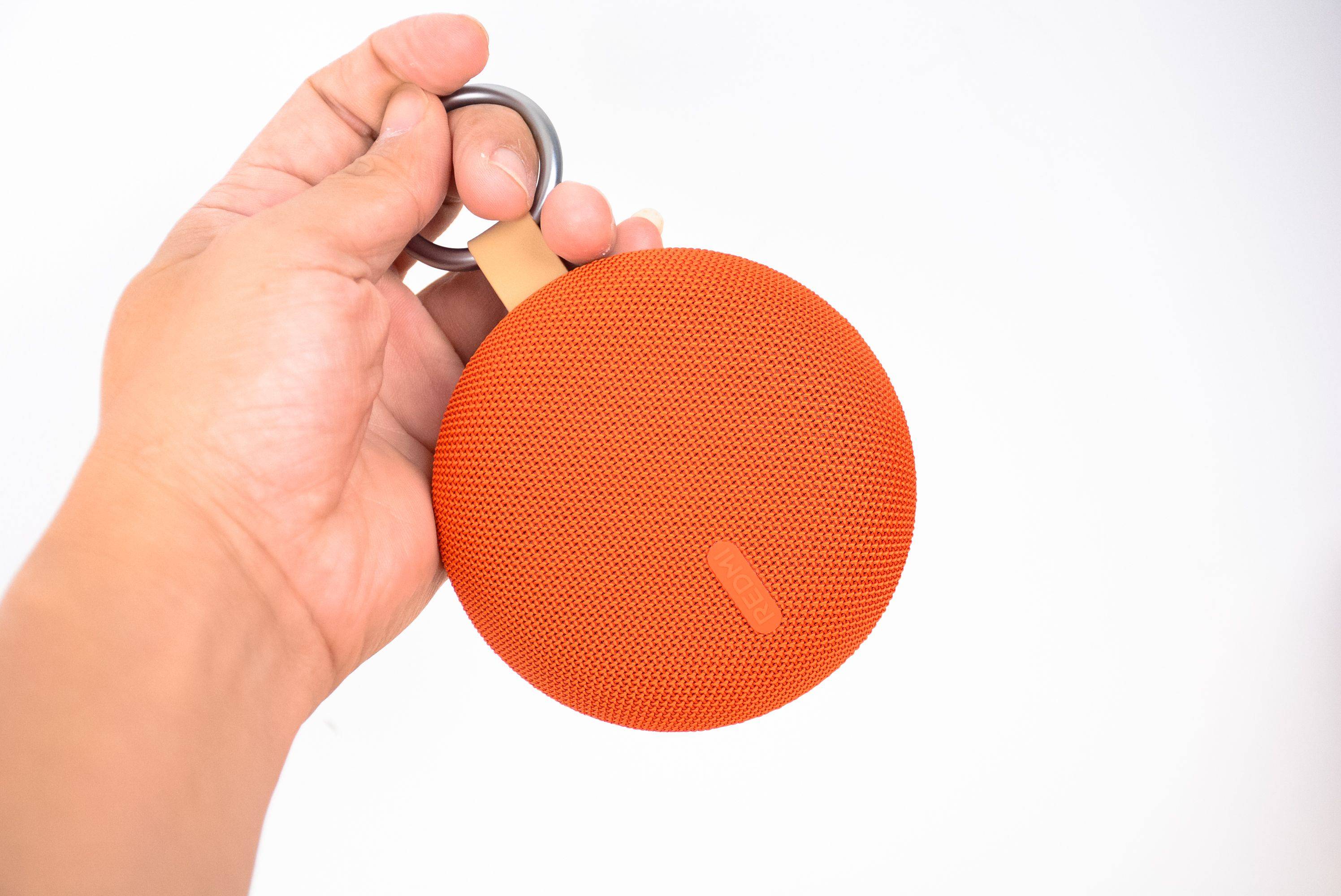 作为一款户外音箱,REDMI蓝牙音箱2设计了挂扣,方便悬挂在腰带、背包的背带上面。