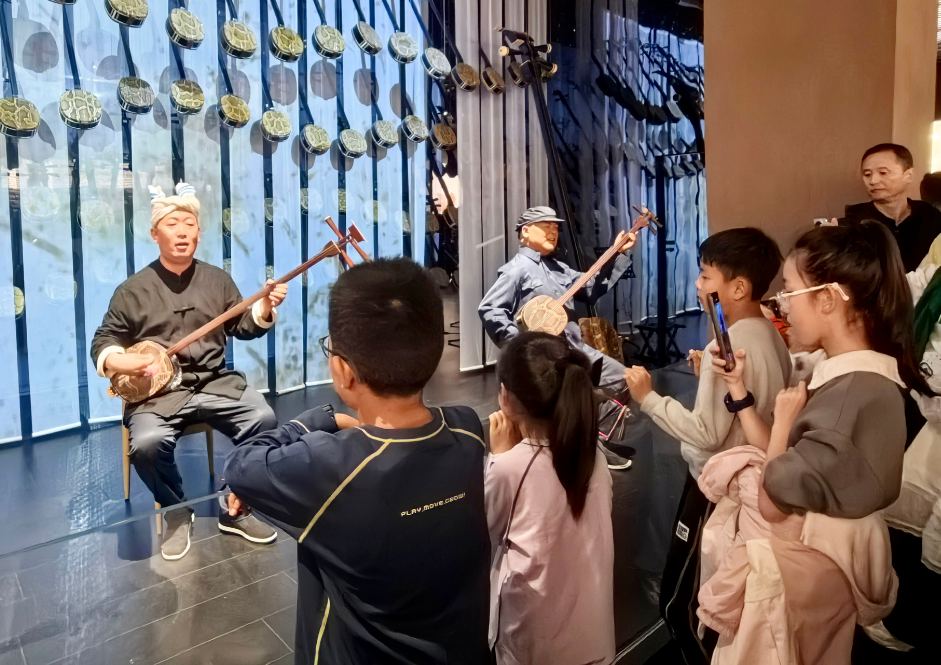 非遗赋能核心景区,让游客沉浸式体验陕北文化魅力。双节期间,榆林古城作为“流量核心”,每日推出两场特色展演,56个民族“快闪”、陕北秧歌、民乐演奏、华阴老腔、陕北说书沿街巷巡游,新编大型歌舞秀《老榆林·小北京》压轴登场,让各路游客在喜庆氛围中感受传统文化魅力。榆阳区非遗展示馆内同样热闹,榆林小曲、陕北道情、秦腔、晋剧轮番唱响,泥塑、盘扣、彩棉堆画等非遗技艺展示区前,游客或驻足观赏,或动手体验。与此同时,全市各博物馆、纪念馆围绕人文历史、红色文化、非遗体验主题,组织开展40余场特色活动,累计接待游客超3万人次,将静态展陈转化为可参与、可感知的动态课堂,让文旅体验更具深度与温度。