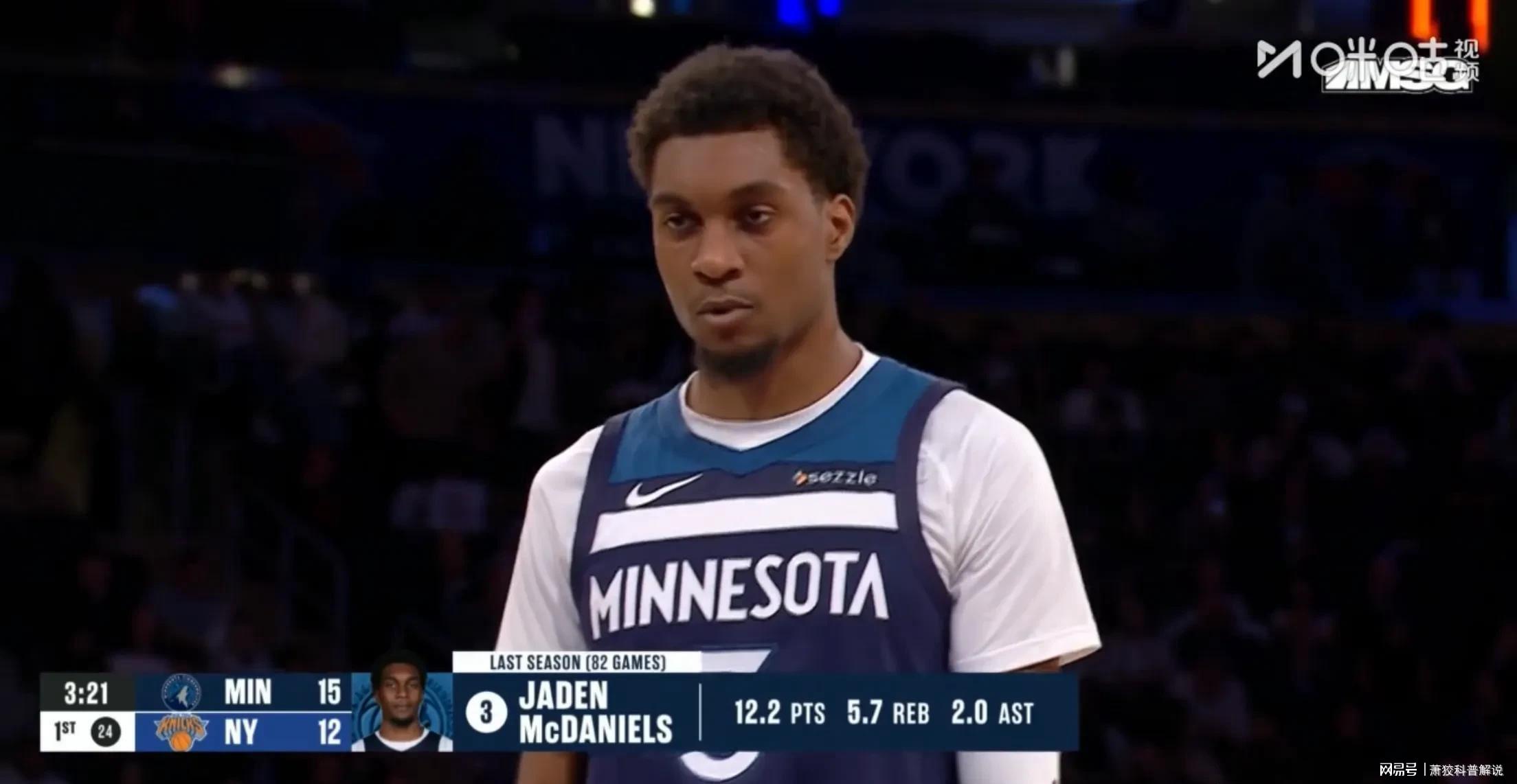 第二节开场都换上主要轮换球员,尼克斯队的克拉克森连得4分,森林狼队的迪林厄姆连得5分,半场结束森林狼队44-38领先尼克斯队6分,三分球命中率尼克斯队14.8%,森林狼队31.3%,一场不太精彩的练兵比赛。