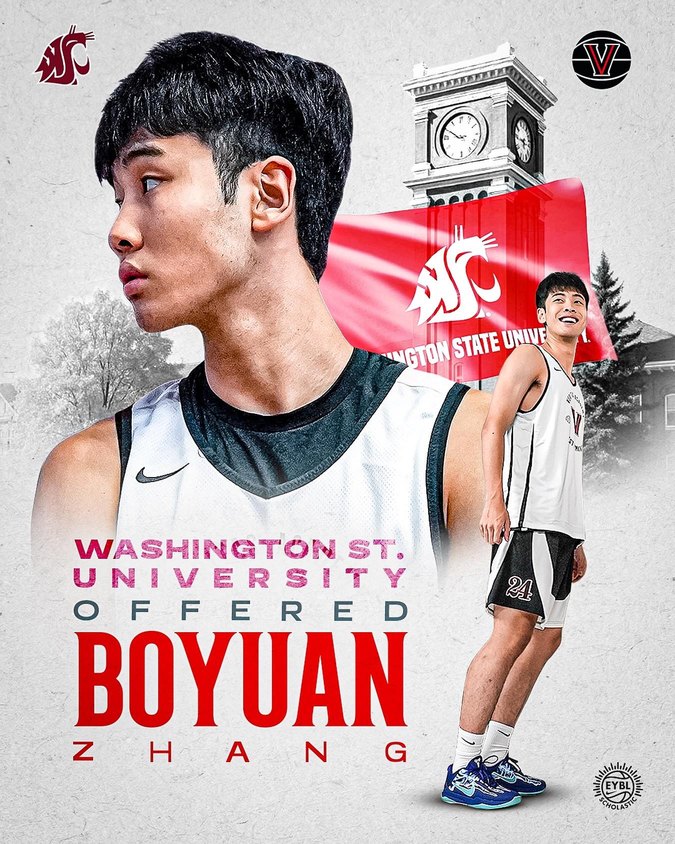 张博源收到华盛顿州立大学offer,为其收到的第四份NCAA D1高校offer