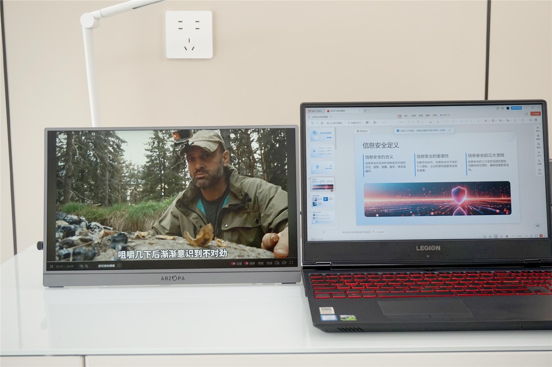 先说说连笔记本的双屏显示,这是我平时用得最多的场景。给笔记本加个屏幕,就可以同时办两件事,比如一个屏做海报,一个屏剪辑视频,或者一个屏做PPT,另一个屏用来摸鱼、追剧。