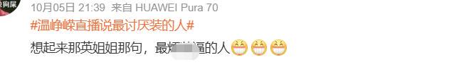最近温峥嵘在直播时顺嘴说出了那英金句,称自己最讨厌装的人。