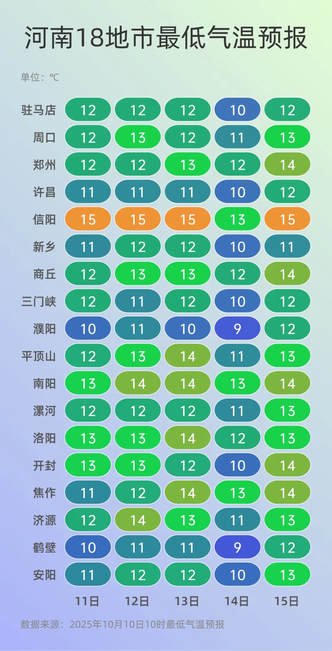 来源:河南省气象台2025年10月10日12时预报