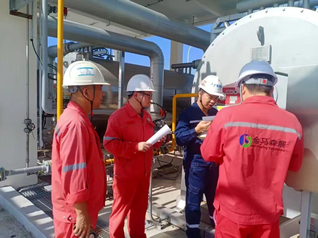 3台导热油炉试压前,项目部组织业主、监理和总包单位参与耐压试验方案评审,并提前与自治区特检院充分沟通交流,确保验收工作顺利进行。