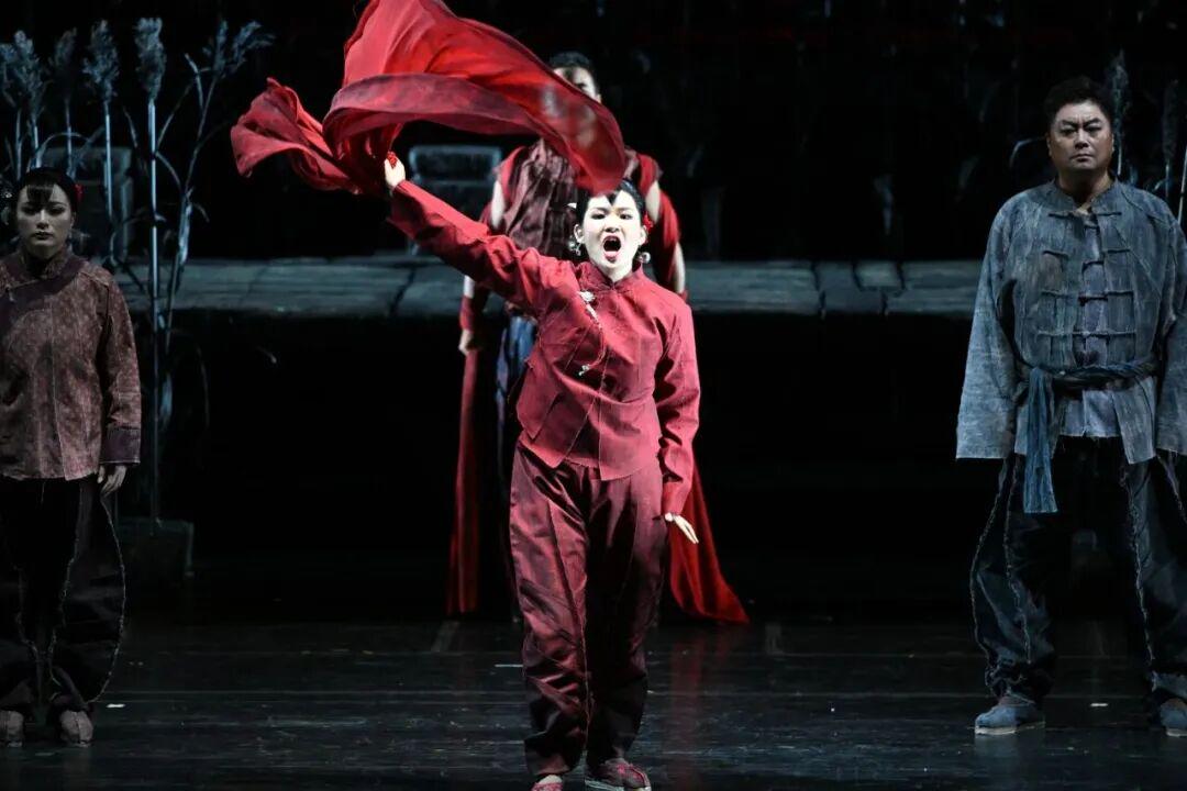 今年是抗战胜利80周年,作为国家大剧院倾力打造的作品,编剧莫言七易其稿,创作了有别于原著小说的歌剧。作曲家郭文景以“中国风格”和“中国气派”作为核心追求,通过采风汲取的茂腔、山东梆子等民间音乐元素,与美声唱法巧妙融合,传递出一方水土特有的音乐语言。歌剧《红高粱》以抗日战争时期山东高密乡为背景,浓缩了九儿、余占鳌等普通人的爱恨纠葛与抗日史诗。八场剧情层层递进,将个体命运与民族危亡紧密交织,生动再现了抗战历程中中华儿女的觉醒与坚守。该剧由国家大剧院音乐艺术总监吕嘉执棒指挥,导演王筱执导。