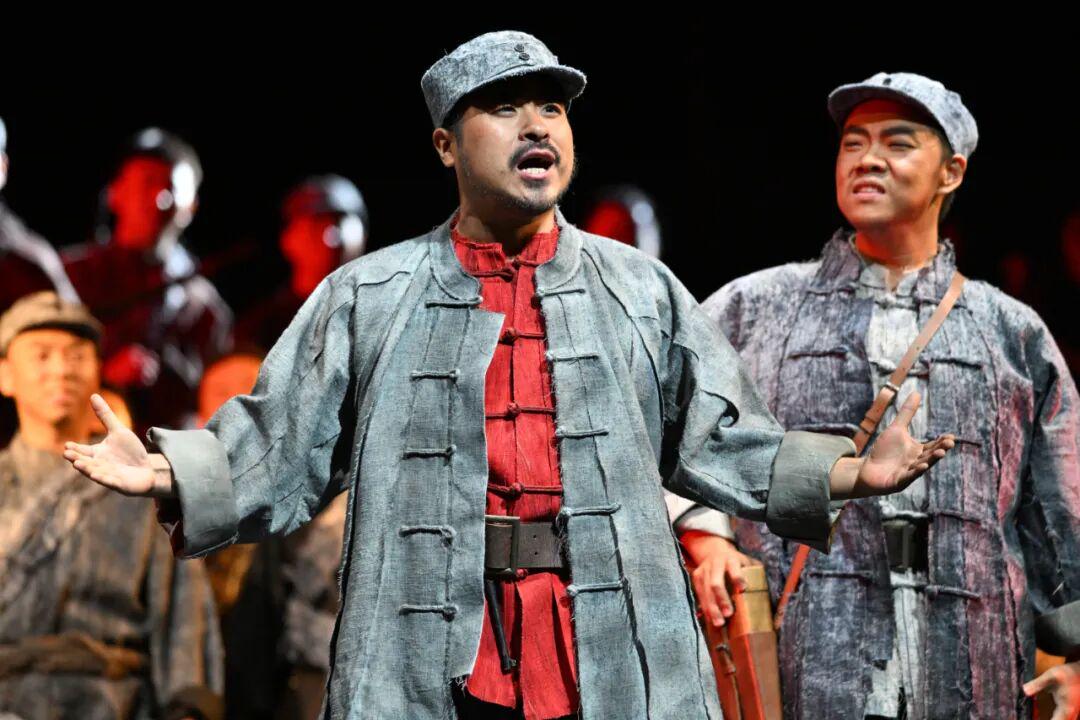 男高音朱贺饰演八路局联络员任参谋一角,“高粱如火,斗志昂扬……”唱出共产党带领中国人民追求民族解放的决心。朱贺透露,刚接到任参谋角色的时候,脑子里想的都是“英雄、不怕死、一身正气”这些词。但真扎进《红高粱》这个歌剧世界里,穿着那身被鲜血浸透的旧军装在高粱地里,他才慢慢摸到这个人物的魂。“他哪是什么天生的英雄啊?可能就是高密本地的一个后生,以前也在这片地里种高粱、喝酒,可能还偷偷喜欢过九儿那样鲜活的姑娘。是鬼子来了,把他从一个庄稼汉,逼成了一个扛起枪的兵。”