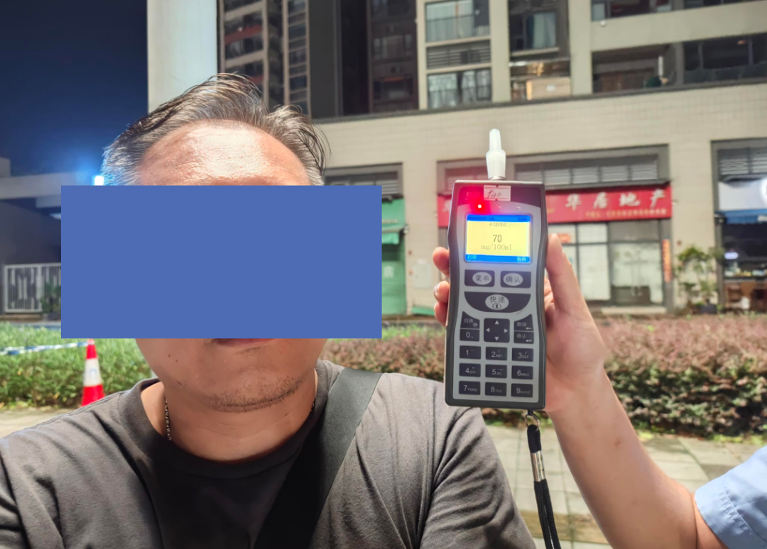 ▲林某,现场呼气式酒精检测值:70mg/100ml