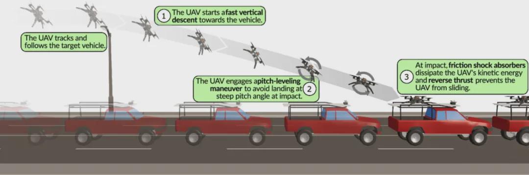 通过一系列现场试验,研究团队验证了其搭载摩擦减震器与反向推力系统的DART无人机在高速移动平台上的着陆能力。