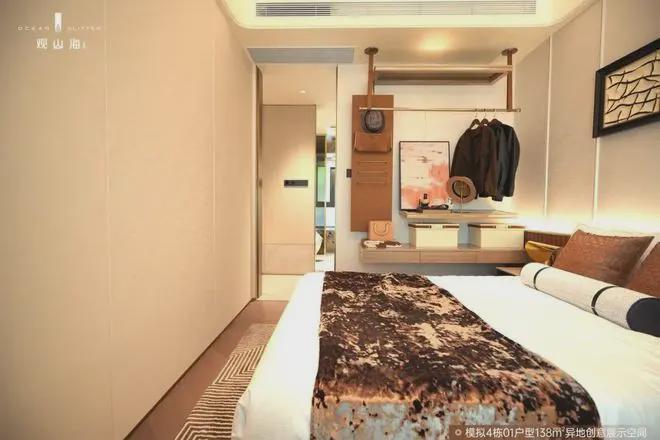 4栋01户型主卧采用U型玻璃仓飘窗设计,对比常规一字型飘窗,不仅通风对流,更有约270°三面环幕视野,园间林影尽收眼底,坐揽山色,卧拥星河。卫生间明卫设计,打造酒店级奢适休憩空间,尊崇感时刻相随。
