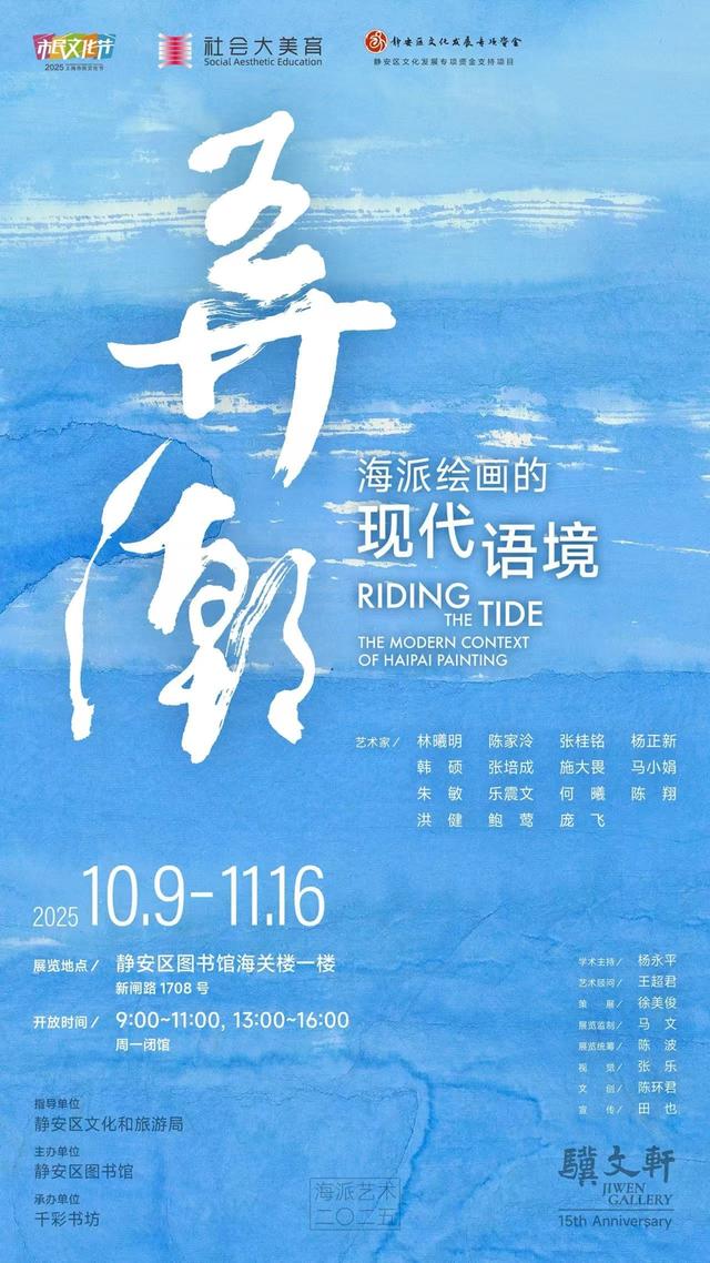 10月9日起,“弄潮———海派绘画的现代语境”展览在静安区图书馆海关楼一楼举行,将持续至11月16日。此次展览作为海派艺术2025系列展的重要一环,既是对千彩书坊骥文轩15年来深耕海派绘画的总结与汇报,更展现了海派艺术与城市精神的深度融合。