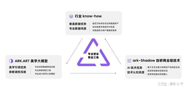暗壳科技 CEO 黄燕虹介绍:“在垂直领域AI 产品研发中,我们构建了‘专业数据纯度 × 参数调校深度 × 技术认知高度’的技术范式。通过对设计行业结构化数据的深度挖掘与精细标注,暗壳AI打造出通用AI难以突破的专业壁垒,形成‘行业认知 - 技术创新 - 应用价值’的核心闭环。依托行业 know-how 沉淀,公司自主研发的ARK・ART 美学大模型,结合ark Shadow 商用级商品精准植入技术,从美学生成逻辑到商业场景落地形成完整技术闭环;自研基于扩散模型(Diffusion Model)框架的LVLM模型(Latent Visual-Language Model,潜在视觉 - 语言模型),经百万级行业标注数据训练,在生成内容的‘专业美学契合度’上达到行业领先,更贴合专业设计师的创作审美;同时,基于交叉注意力机制(Cross-Attention Mechanism)的特征识别与多模态融合算法,实现商品在场景中的高精度、自然化植入,为产业端带来AI时代的高效赋能。面向未来,公司将持续运用独家行业 know-how及产品sense,打造基于MoE(Mixture of Experts,混合专家模型)架构的‘专业设计师 Agent’,持续强化在垂直领域的技术领先性与场景话语权。”
