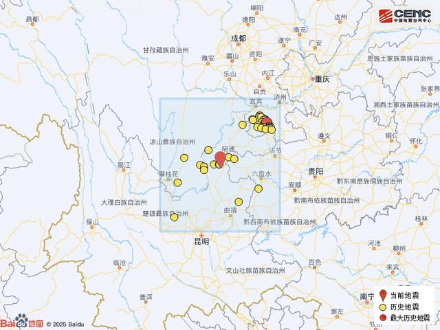 根据中国地震台网速报目录,震中周边200公里内近5年来发生3级以上地震共144次,最大地震是2022年4月6日在四川宜宾市兴文县发生的5.1级地震(距离本次震中204公里),按震级大小前50次历史地震分布如图。