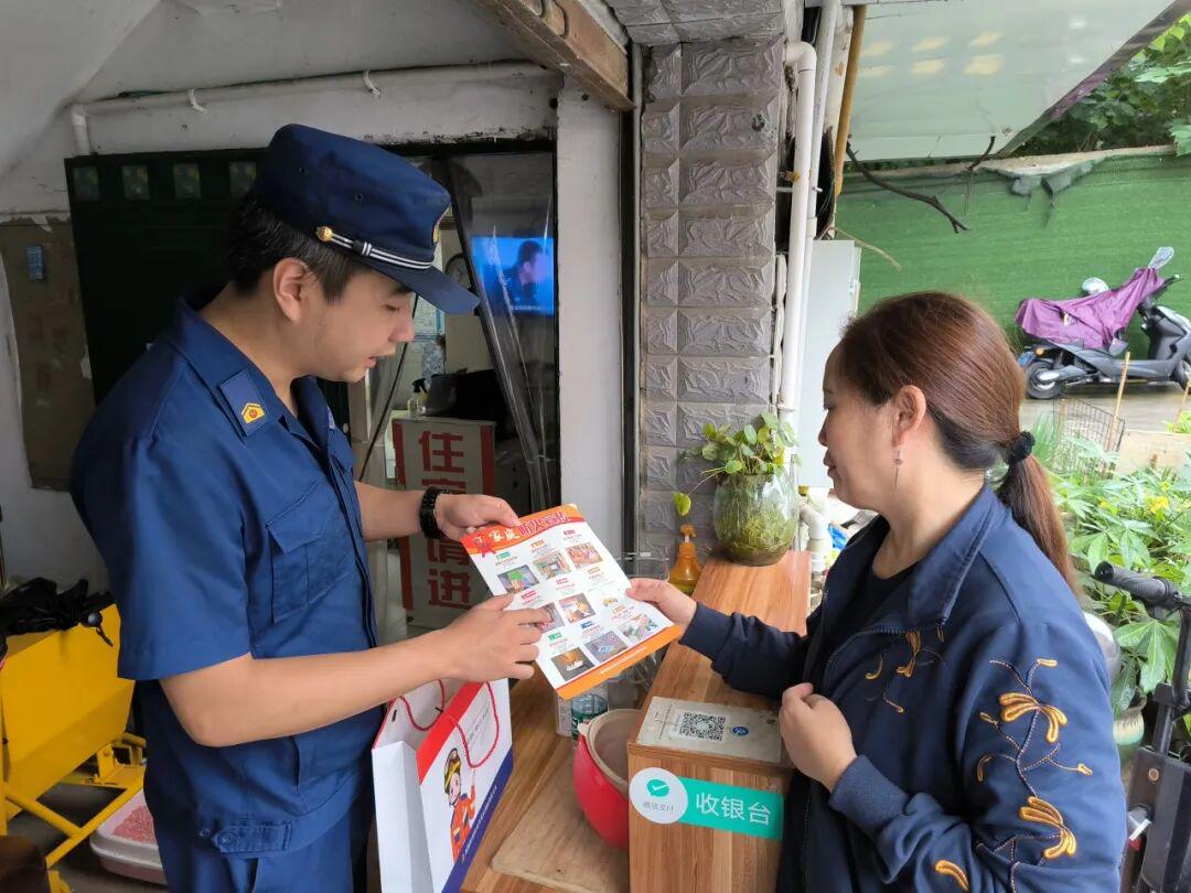 采用“线上+线下”的方式,利用微信群、移动终端平台,向辖区重点单位、物业服务企业发送复工复产消防安全提示,同步派出防火班及消防宣传员,走街串巷深入“九小场所”发放消防知识宣传单,向群众细致讲解预防火灾,扑救初起火灾常识,传授灭火器使用方法以及火场逃生自救技能。