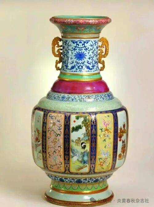 如今,各种釉彩大瓶享有“瓷母”的美誉,摆在故宫陶瓷馆的显要位置。不计成本、费时费力的乾隆瓷器折射着乾隆时代好大喜功、志得意满却在实质上无甚进步的现实。再精美硕大的器具都不能掩盖瓷器脆弱易碎的本质。当中国进入近代,西方文明呼啸而来,如此状态的中华文化如何经受住中西方剧烈的碰撞,令人担忧。各色釉彩大瓶就好比一块绚丽的帷幕,静静地矗立在近代中国的前夜,见证了这一切。