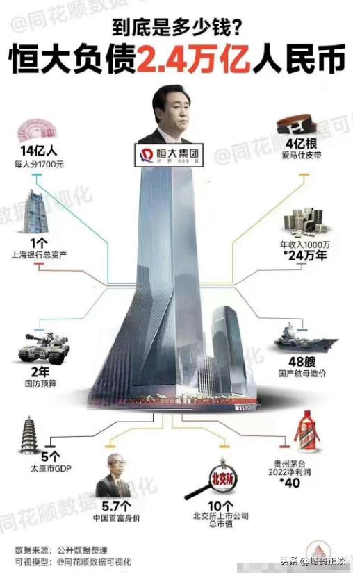 没过多久,恒大地产正式爆雷,恒大“财务造假”事件被扒出,大众才知道原来恒大早都“没钱”了,已经欠债2.4万亿。