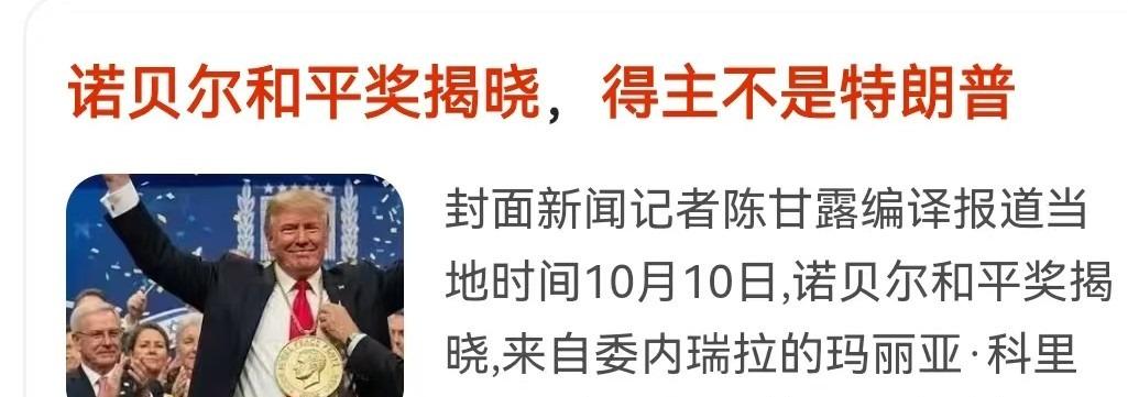 封面新闻:诺贝尔和平奖揭晓,得主不是特朗普|