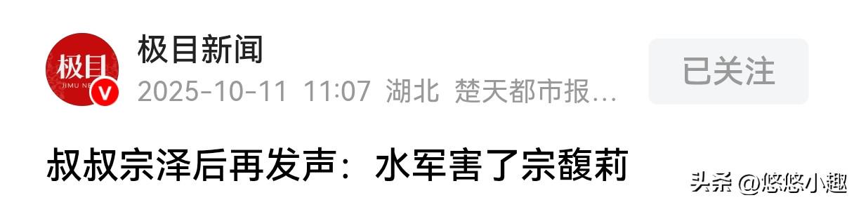 在宗泽后看来:是娃哈哈成就了现在的宗家,言外之意,觉得侄女宗馥莉,有点本末倒置了。
