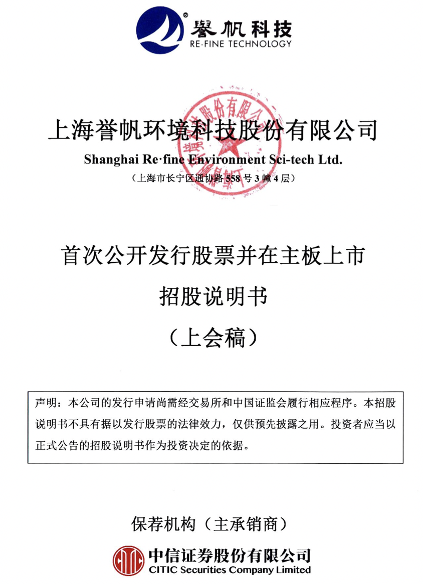 瑞财经 吴文婷 近日,上海誉帆环境科技股份有限公司(以下简称“誉帆科技”)深主板IPO注册生效,保荐机构为中信证券股份有限公司。