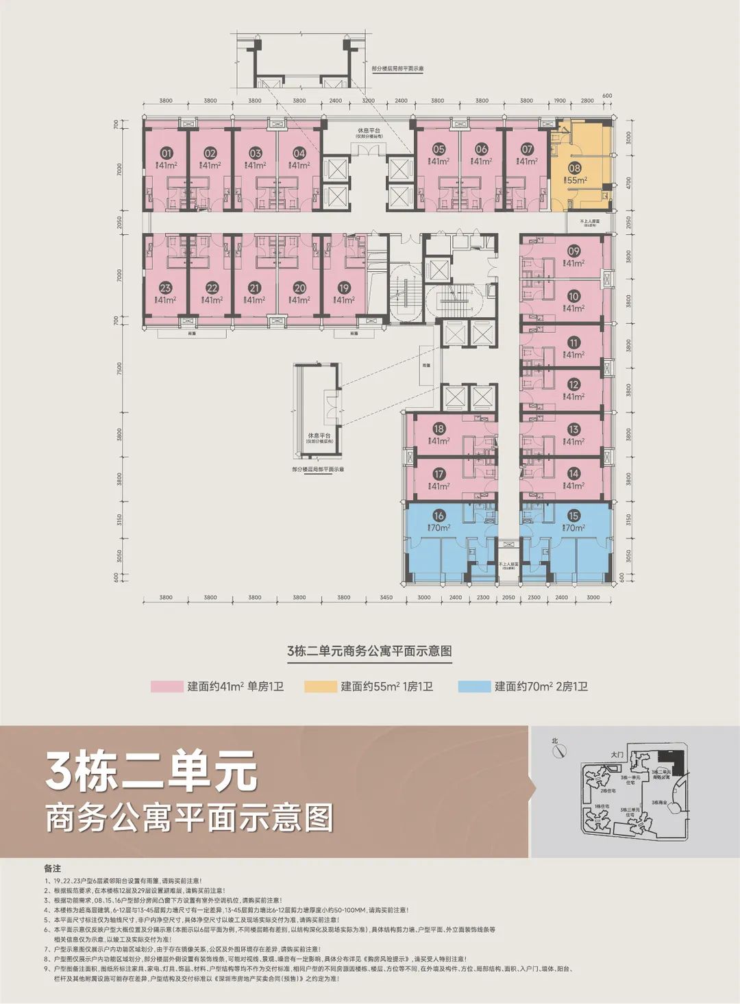 (41㎡单间760套、55㎡一房38套、70㎡两房76套)