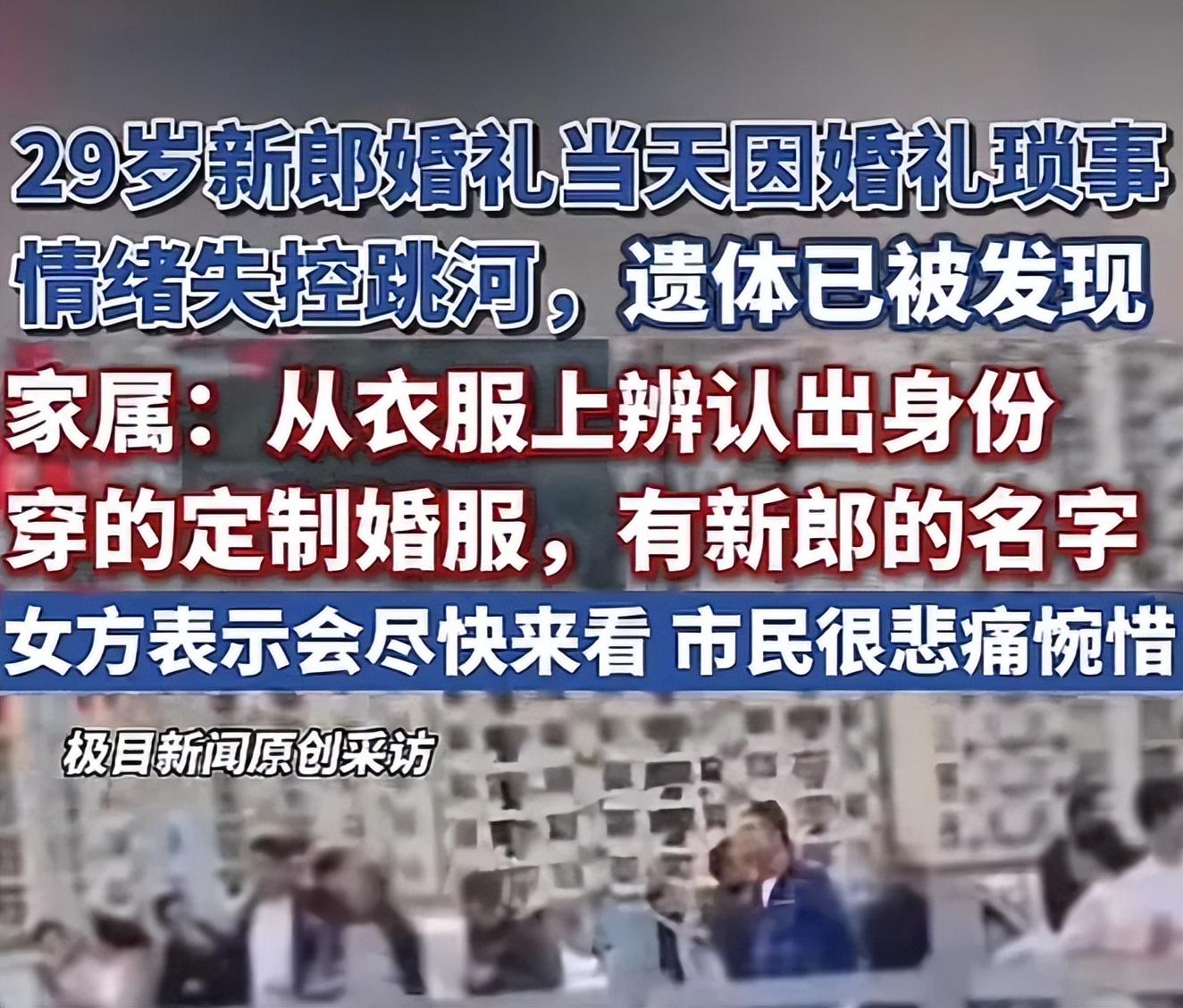 参考文献:1.南方都市报:《婚礼当天跳河新郎,遗体已找到!最新消息》2025-10-102.中原网:《陕西旬阳29岁新郎结婚当天因婚礼琐事情绪失控跳河,遗体已被发现,家属:定制婚服上有新郎名字》2025-10-093.扬子晚报:《婚礼当天跳河男子已找到,家属:在大桥下游上百米处发现遗体,定制婚服上有新郎的名字》2025-10-09